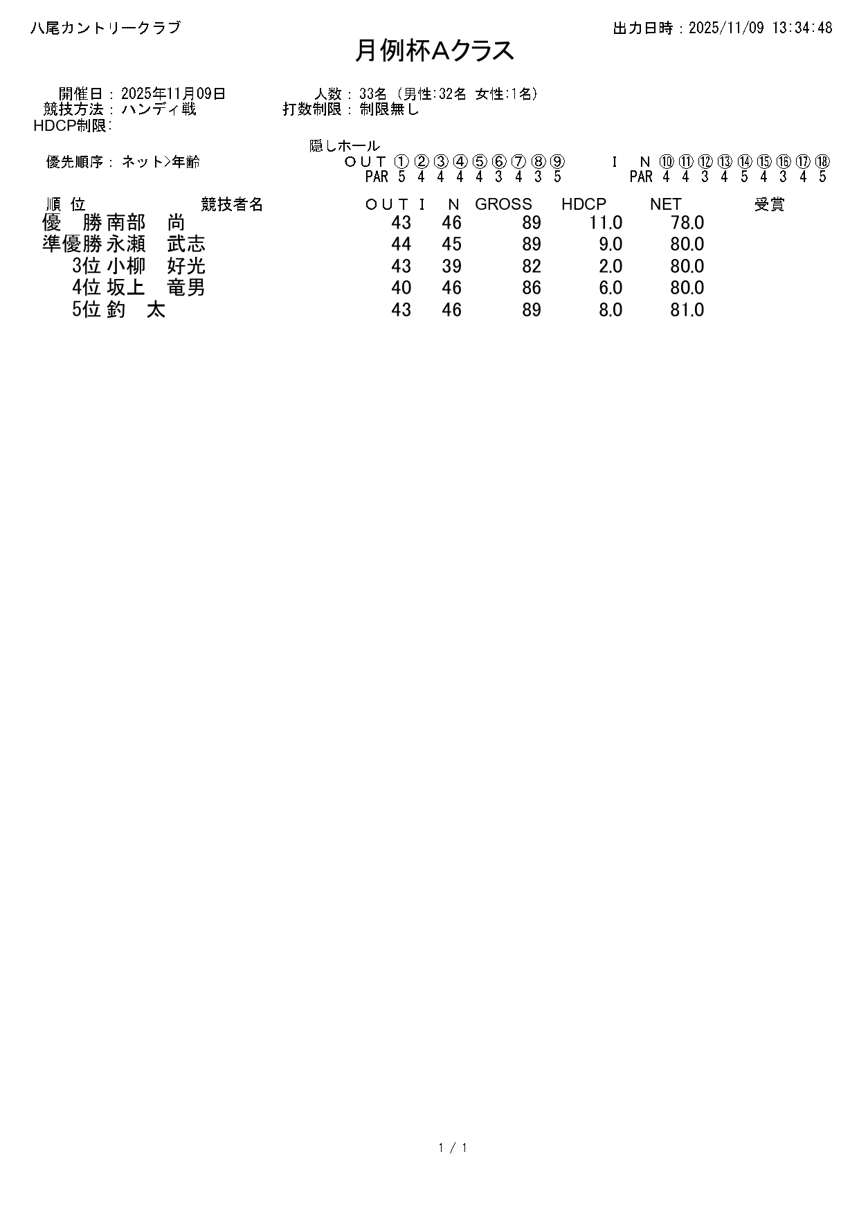 月例杯Aクラス