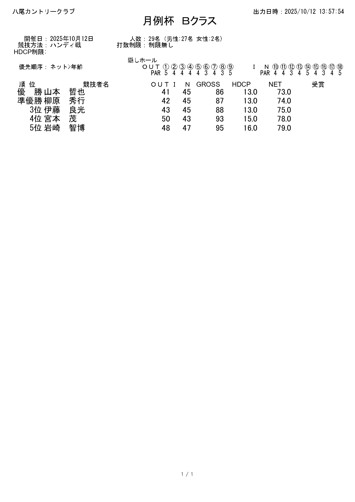 月例杯Bクラス