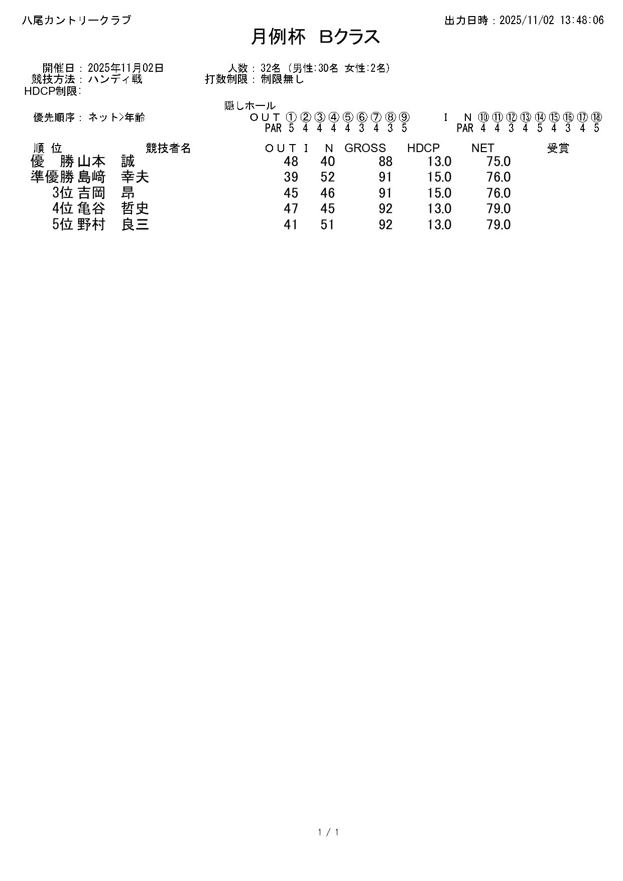 月例杯Bクラス