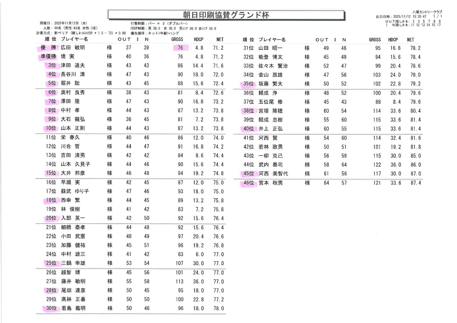 HOMEすべて朝日印刷協賛グランド杯 結果